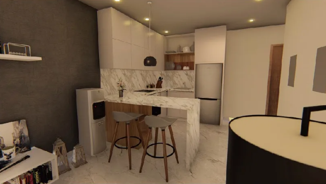 The fabric sofa which is in the sitting room has the contemporary feeling and a simple solid wood coffee table, TV cabinet are in well-proportioned. The material of kitchen marble is qualitative confluence gets contracted atmosphere. The combination of solid wood and high rebound sponge makes it more natural, which alleviates the sharp sense of geometric form in the space. Yabo provides this apartment with elaborate matching and customization. In order to be used for a long time, it is not only strict in material design and technology, but also in hardware quality.